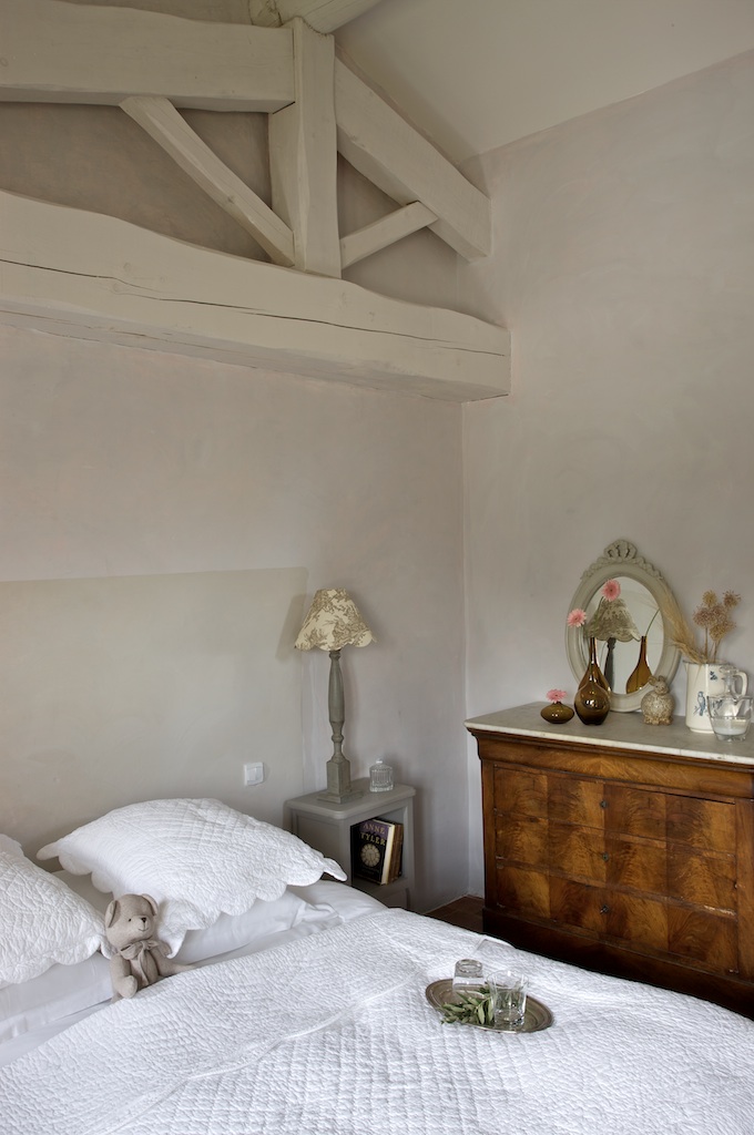 -On the same first floor, the rooms 1 and 2, with pastel colors are located south side, with a view of the gardens and swimming pools.As all rooms we offer either 2 single beds 90/200 or a double bed 180/200.