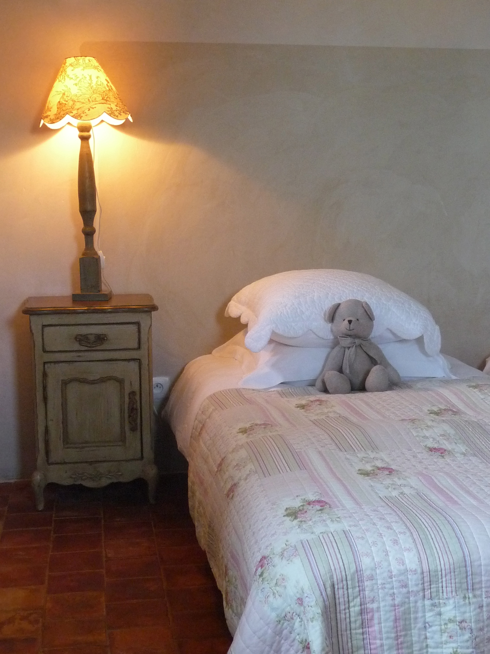 -Sur le même palier de les chambres 1 et 2, aux couleurs pastelsse situe aupremier étage côté sud, avec une vue sur les jardins et piscines.